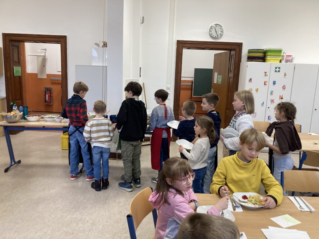 Im Rahmen des Sachunterrichts steht das Thema „Gesunde Ernährung“ auf dem Lehrplan. Neben den theoretischen Inhalten hat sich die Klasse 4c auch in der Praxis mit dem Thema auseinandergesetzt und viele gesunde Gerichte gekocht.