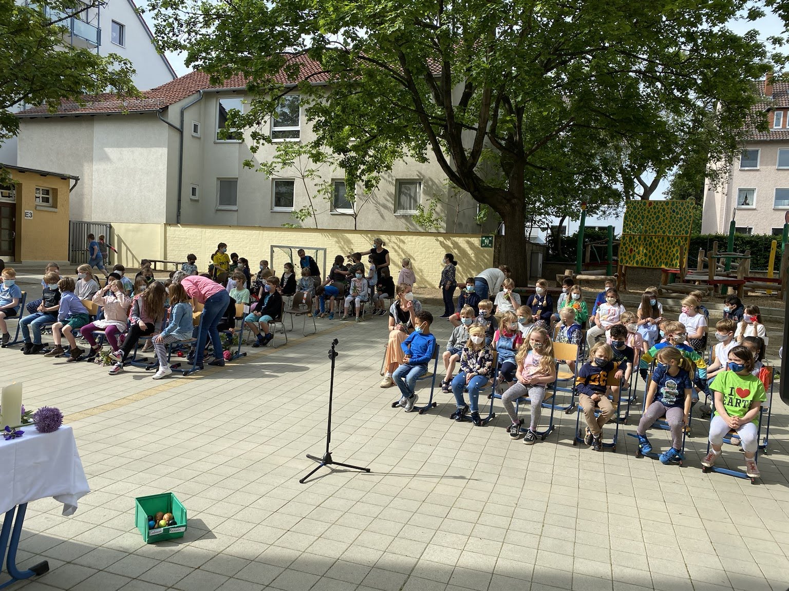 Wir haben das Beisammensein sehr genossen und waren froh, dass die Klasse 4b für uns gesungen hat.