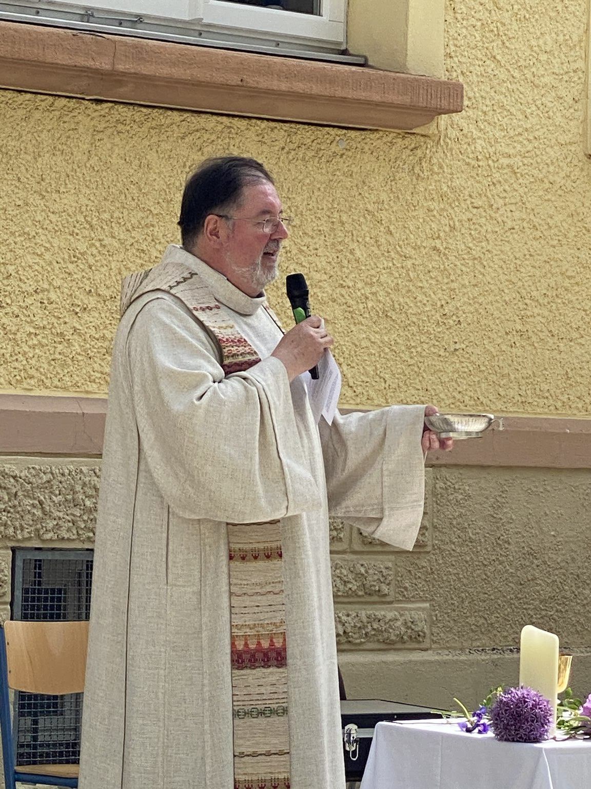Zum Fronleichnamstag kam Pater Fritz zu uns und wir haben gemeinsam gebetet und das Abendmahl gefeiert.