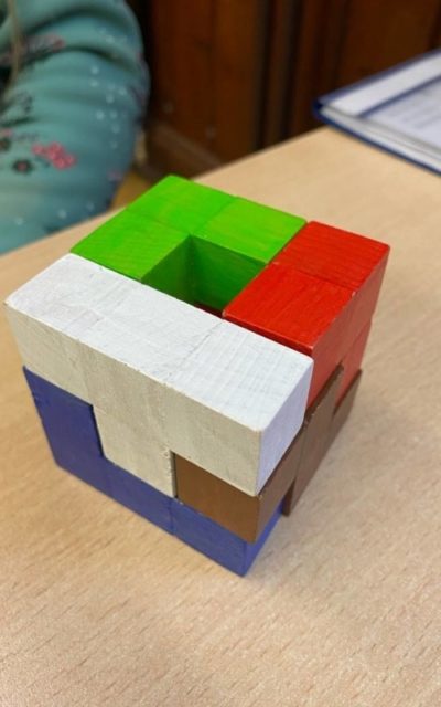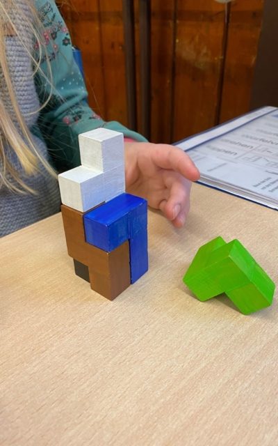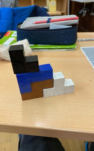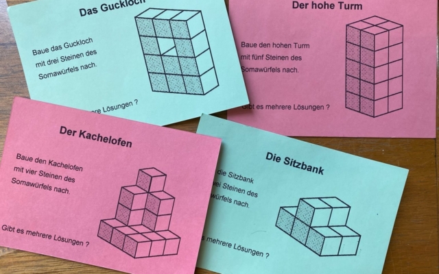 Die Klasse 4a hat sich im Rahmen des Mathematikunterrichts in der letzten Woche mit dem SOMA-Würfel beschäftigt. Der Würfel besteht insgesamt aus 27 kleinen Würfeln, die zu 7 verschiedenen Teilen zusammengesetzt sind. Jedes Teil hat sogar einen eigenen Namen!