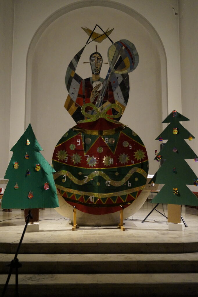 In diesem Jahr wurde ein Adventskalender geöffnet. Hinter jedem Türchen verbarg sich ein eingeübtes Stück. Nach der Eröffnung durch den Schulchor, waren die einzelnen Klassen an der Reihe. Jede Klasse hatte im Vorfeld fleißig geprobt und geübt.